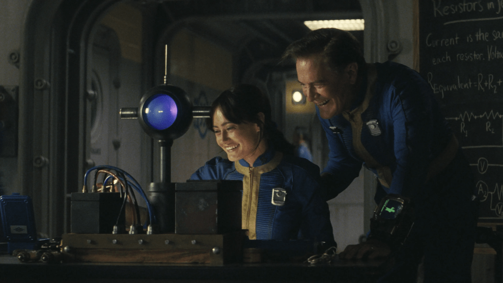 El corazón de la serie reside en la figura de Lucy, interpretada magistralmente por Ella Purnell. Ella tiene una hermosa vida post-apocalíptica. Al inicio, y gracias a su crianza, fue enseñada a seguir un destino que, quizás para algunos espectadores que no sabían del videojuego, se ve sin sentido y sin gracia, pero que, para ella, es su mundo ideal. El objetivo, que su descendencia emerja de las profundidades y le enseñe a esos salvajes Raiders cómo comportarse debidamente y repoblar la tierra con justicia. Algo se trunca en el camino y ella se enfrentará a un cambio de planes. Ahora, su deseo y motivación fundamental será la búsqueda desesperada de su ser más querido del Vault 33, lo que la llevará a enfrentarse a los horrores del yermo radiactivo.